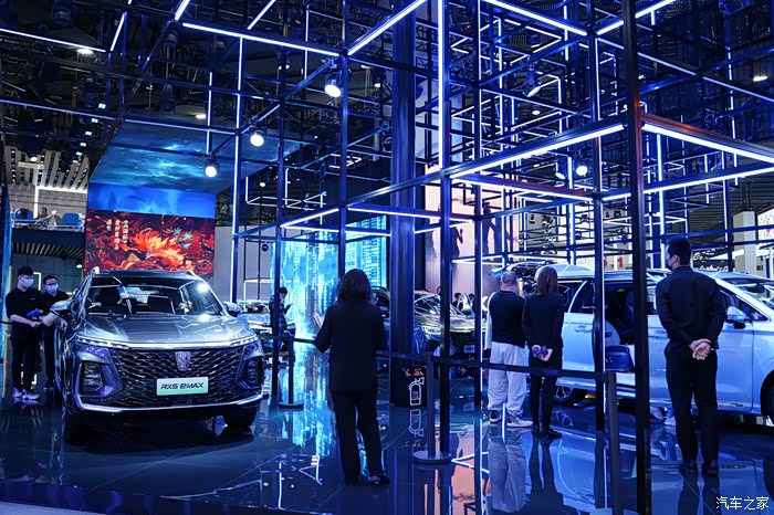 “荣威”的场地布置还是挺有设计感的,车模小姐姐也漂亮。