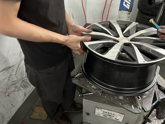 其次,开始拆下轮胎,这个环节,一定要告知师傅做好轮毂防护,以免大力出奇迹划伤轮毂,一般4S都有专业的拆胎设备,细节上再注意一些,可保轮毂完好无损。