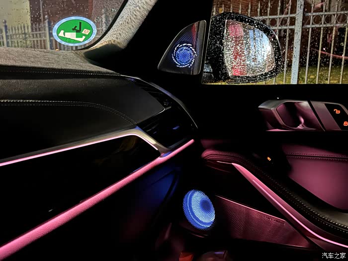副驾侧,A柱和门板上,各有一个音箱,夜间效果酷炫