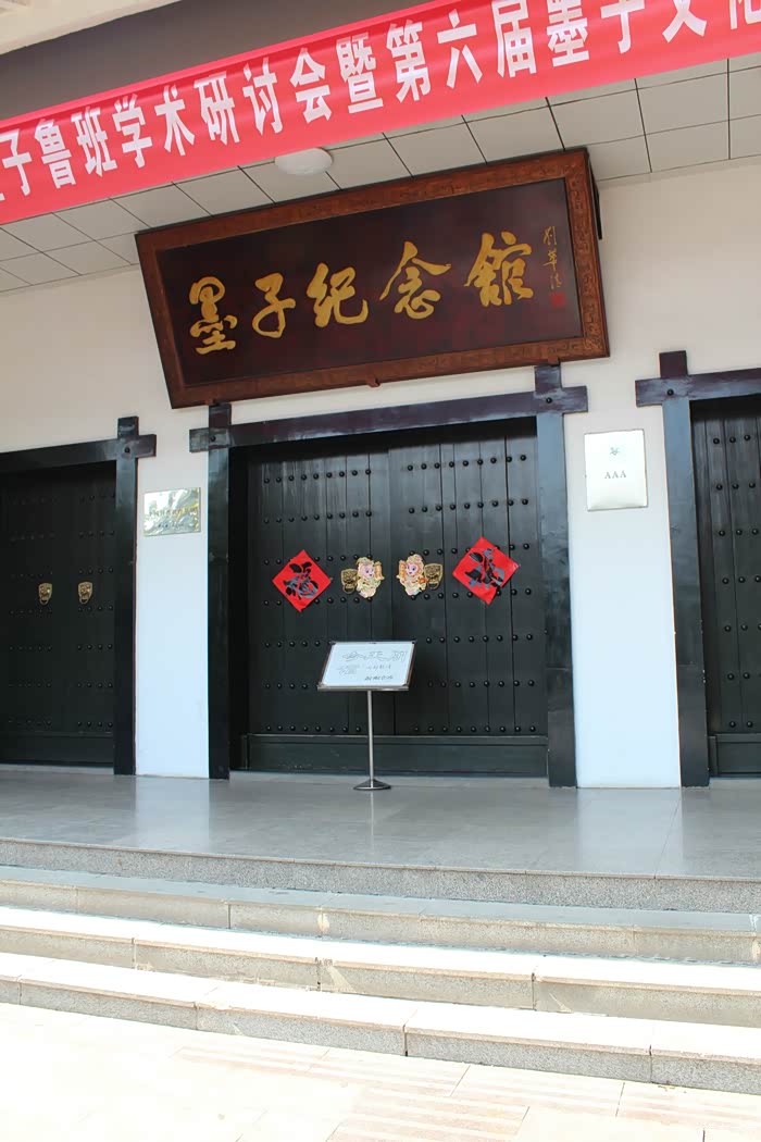 墨子纪念馆坐落于山东省枣庄市滕州荆水河滨、龙泉塔畔,是集学术研讨、图书资料收藏、科技教育、参观游览于一体的综合性庭院式建筑群体。墨子纪念馆始建于1993年,2007年6月进行升级改造,占地面积20000平方米,建筑面积8000平方米。是世界唯一一座专门研究墨子文化、收集墨子资料、展示墨子研究成果的场馆。墨子纪念馆由东、西、北三部分组成,东院为展厅,主要有序厅、综合厅、科技厅、圣迹堂、军事厅等。西院建有目夷亭和名人题词碑廊。北部为图书资料楼,收藏国内外墨学研究图书资料。国家AAA级景区。