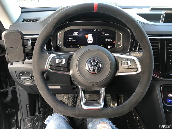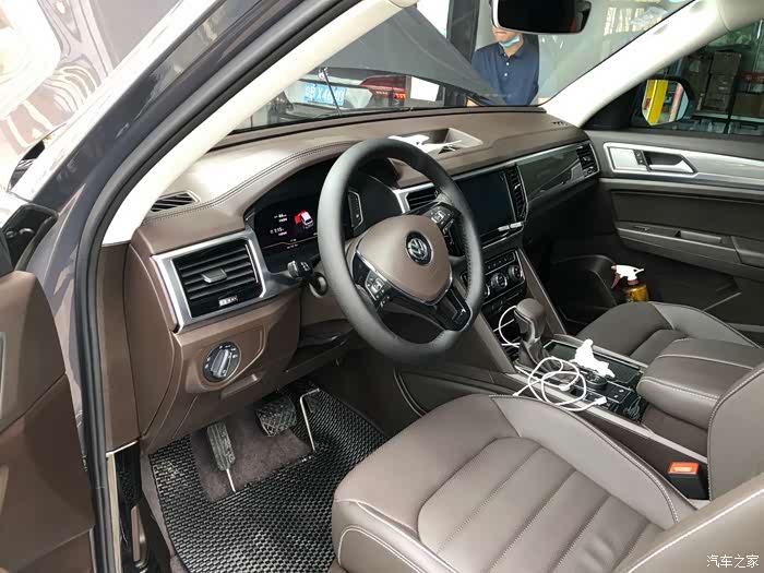 驾驶室里还是途昂的样子,不同之处在于液晶空调面板和R-LINE(半个R-LINE)的盘子