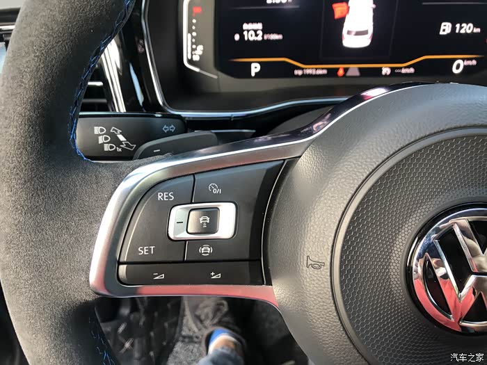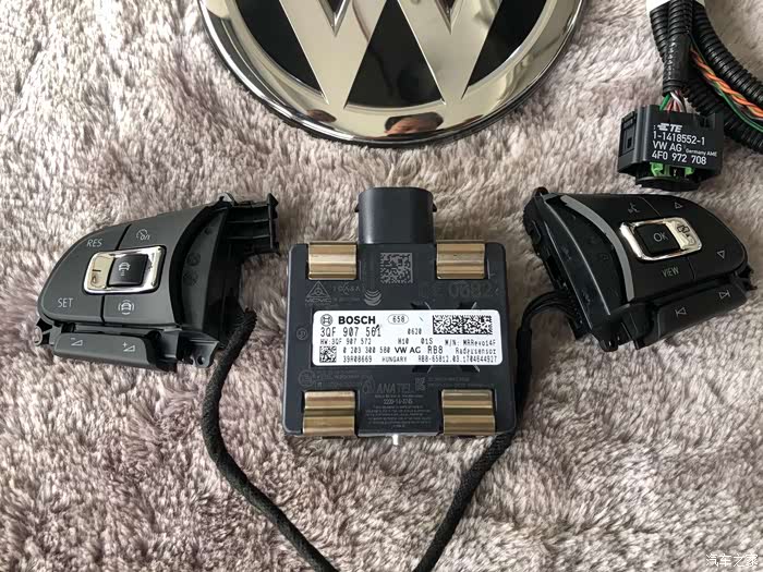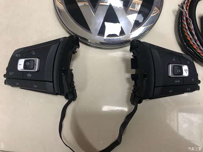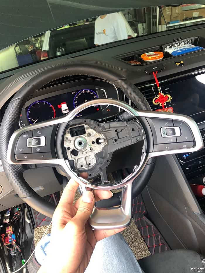 途昂X的方向盘采用了R-LINE风格的盘子,但是它不带拨片。不带拨片的R-LINE盘子缺少灵魂,给它换上去就对了,顺便就把ACC搞了。