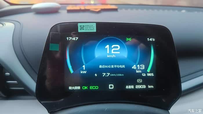 我最低的一次能耗是7.7千瓦时/百公里。
