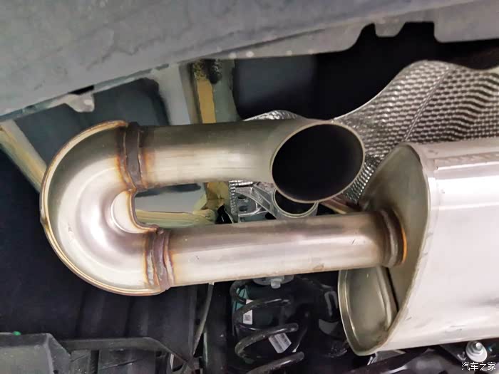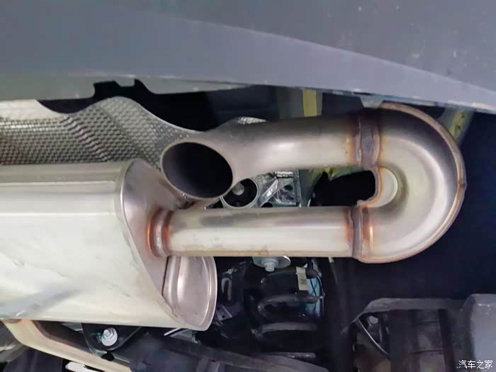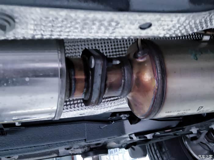 锈蚀:这也是国产车容易中招的问题,当保养把车吊起来时,打开手机电筒,来回几次寻找,看到排气管前端有点暗红色,靠近仔细査看,是温度色变,不是锈迹,好评。(后有照片)