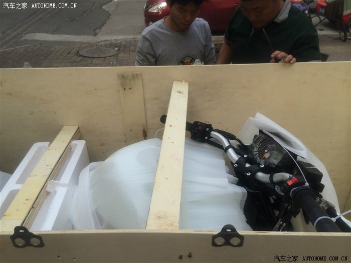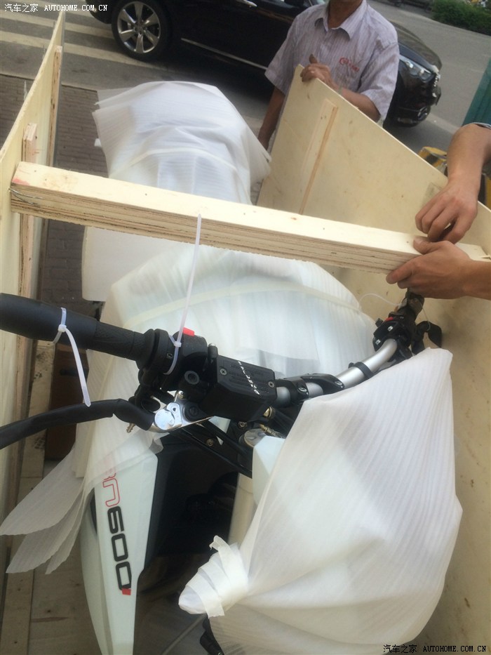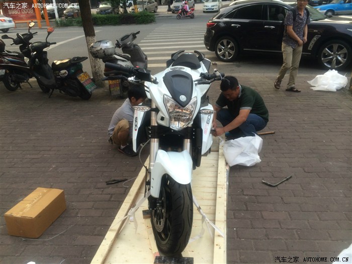 接下来就是找渠道,毕竟总厂就在家门口,还是近水楼台。找了两个渠道,一个报价39800,因为是本地的最后愿意39200出,第二个渠道是在爱车去洗的时候跟人通电话谈摩托车被店里的听到了说他可以拿到低价后来确实也低了一二千说是浙江省的分销价格,第三个渠道直接关系到厂里拿了个惊喜价(由于特价交代过坚决不能透露所以保密各位别扔砖啊,反正全国没有比我低的肯定),问了之后欧版内销的只有黑白红三色,本人比较喜欢BJ的绿色,所以拖关系要求定制绿色的,但是由于厂里不可能为了一台而改变计划,所以准备等几月也无所谓,因为期间本人想起来03年考的摩托车驾驶证没去年审被注销了,先考了驾照也不急。之后就是忙,也忘了去考驾照的事情,突然早上在家休息想起来了立马动身去车管所报名,弄好交钱后选了礼拜5上午去考理论,期间去考场溜了一圈考场重庆老式摩托顺利过关,就打道回府,说来也巧刚报了名吃完午睡突然中午13:30接到电话称绿色BN遥遥无期,现在手头有13辆要就挑一辆,说这是1个半月才出来的13辆,立马回话派人弄辆白色过来先,然后下午在办公室悠哉上网订各种装备花去6000大洋,订好后下班去看车,到了车行刚好运到,尚未拆箱,全程目击拆箱过程后立马回家发论坛上照片,车就直接扔车行让他们明天上牌上保险,刷卡立马走人,然后看书明天考驾照去 O(∩_∩)O哈哈~。上图了