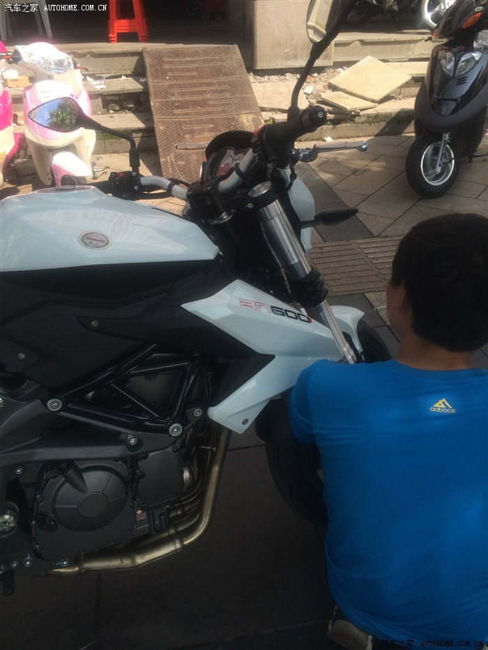 说说要这车的经历吧:进入2014突然有股要重开机车的冲动,然后就是上论坛,天天看,进口大茂车看中不少但起步都起码20+,最喜欢杜卡迪的大魔鬼,只是偶尔玩而已觉得太贵没必要于是放弃,接下来就是水车,由于上了30+日渐稳重,没必要为了玩机车而冒险也放弃(中间有看中一辆红色杜卡迪街霸848是12款的很新出价9万6),看中过隆鑫650传说宝马的血统,也喜欢过黄色,但总觉得缺了点什么,突然想起钱江收购了贝纳利,毕竟是意大利的设计,网上各种看图中了毒,加上本人是温岭的,钱江总厂就在附近,马上跑展厅看车BN600,后中毒更深。在销售厅询价问车,TMD两个男销售一个在看电视一个在玩电脑爱理不理,问机车材料没有,问价格说42800一分不少,压根也没想过在销售厅买,只是这态度让人受不了,话说这上市公司也就这素质????