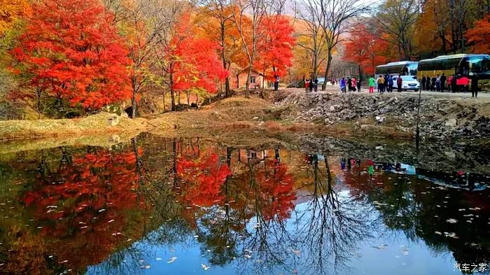 蛟河红叶谷是长白山余脉老爷岭的一条山谷,其位于拉法山国家森林公园的庆岭风景区,这里山势俊秀,林木茂盛,春有绿野,夏有飞瀑,秋有红叶,冬有冰雪:山水水绵延100多公里的红叶林、白桦林各有独特的风韵,装点出丽多资的风光画卷。美丽的秋姑娘迈着轻盈的步伐来到人间,她用那神奇的五彩笔描绘着秋天。红叶谷的秋天是五彩的,山谷里的枫叶黄的似金,绿的似玉,红的似火。远处山上漫山遍野都是红的枫叶和绿的山林,就像一幅美丽动人富有生机的画卷,不得不让人想起一句诗:“停车坐爱枫林晚,霜叶红于二月花。”最惹人的是那青的湖水,平静如沉思的少女,涟漪不起,水波不兴。偶尔一两只鸭子,在水里轻松自在的游着,才使着湖面水花四溅,之后又平静初。