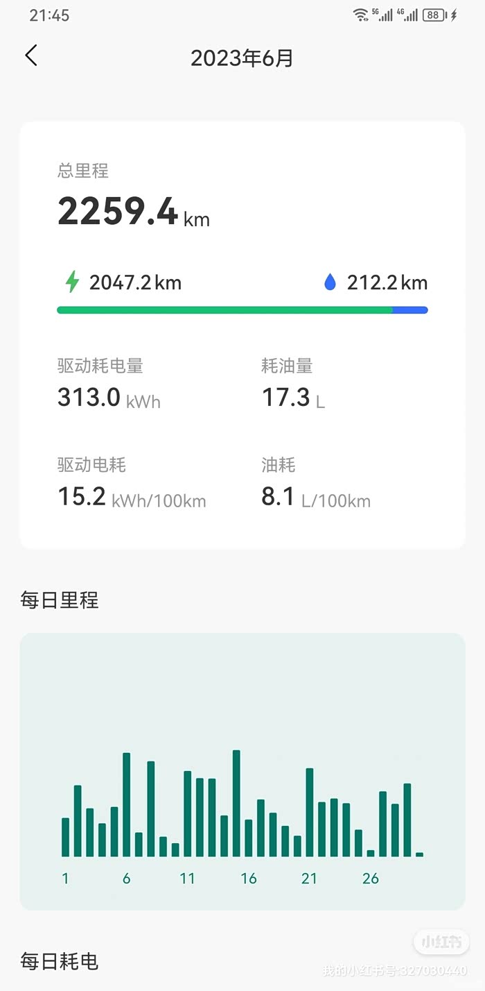 很久没写点东西了,前两天开车特别注意了下这一“枪”的能耗,给我眼前一亮的感觉。这是提车两个月以来理论上最高的行驶距离及最低能耗数据。