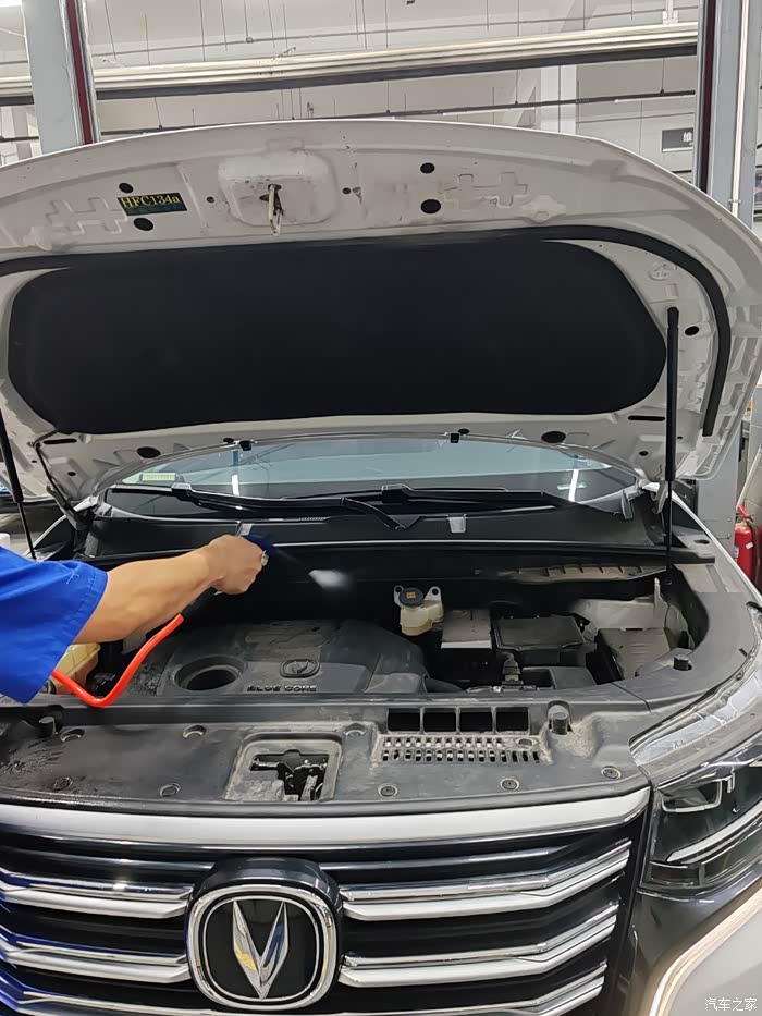 上架子做准备,机舱右上角那是我自己带的空气滤和空调滤,每次保养都是自带,师傅免费帮着更换。