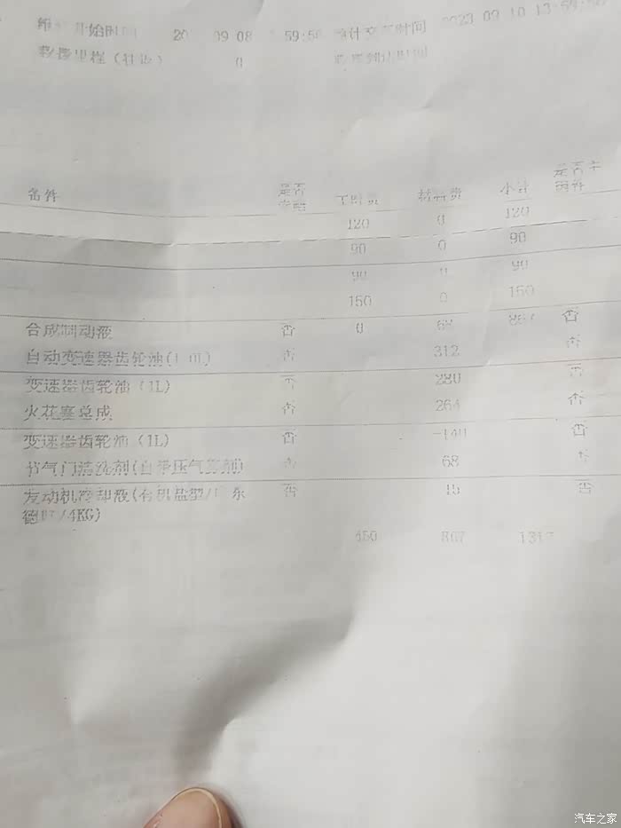 本次大宝剑的费用,机油机滤是买的套餐,这里不显示。除了变速箱油,差速器油,刹车油,火花塞更换,还清洗了节气门,加了点防冻液,其实可加可不加。检查地盘没问题,刹车片还挺厚,师傅说等再跑五万公里看就行。