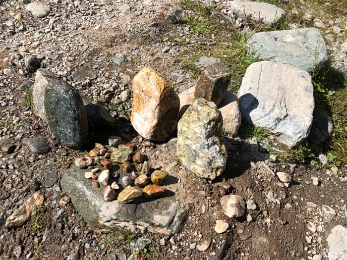 河边还有人专门捡形状各异的石头