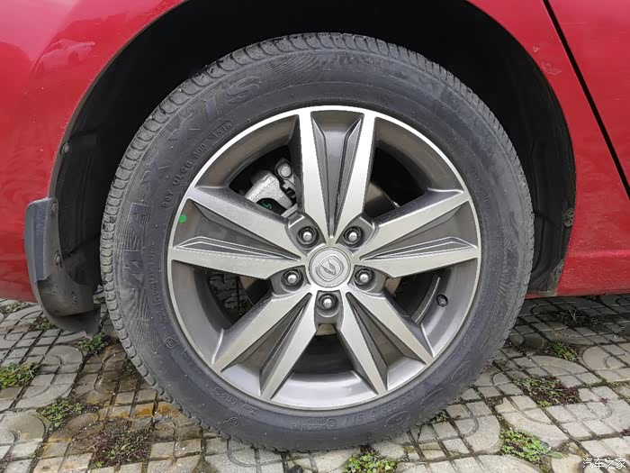 铝合金轮毂造型非常稳重,五幅式的设计显得很有运动气息