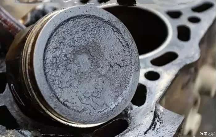 活塞头上的这种黑色颗粒状积碳就是灰分导致的