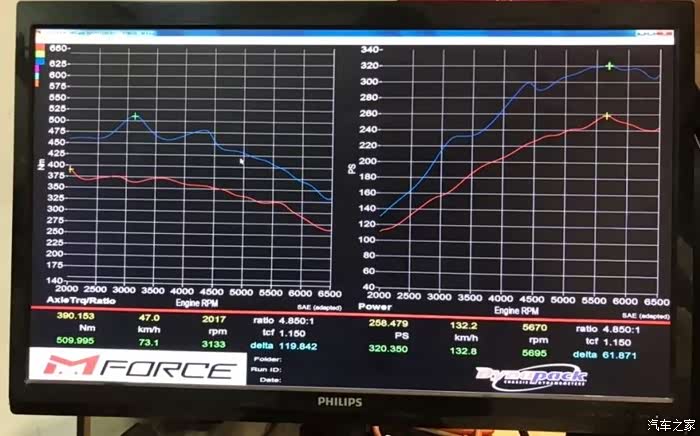 红线是原车曲线,蓝色为拆后刷写ECU后曲线。