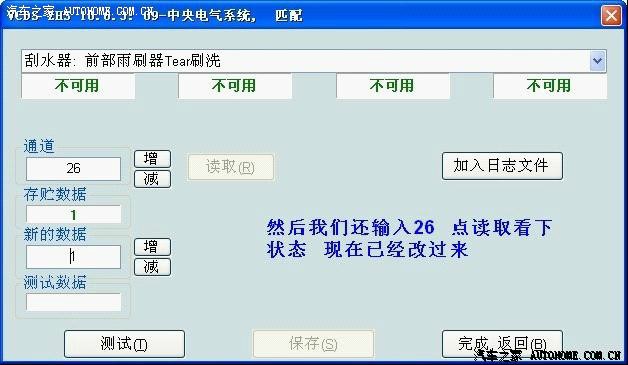 2.通道26 数值1 -- 雨刮器清洗模式改为刮4下后等10秒再刮一下。