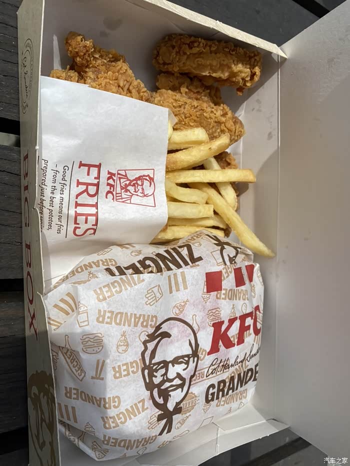 中午饭我们直接简单选择了一个肯德基老爷爷解决了,而且都还不能堂食,只能带到广场上来吃了,画面太狼狈了……没有拍照