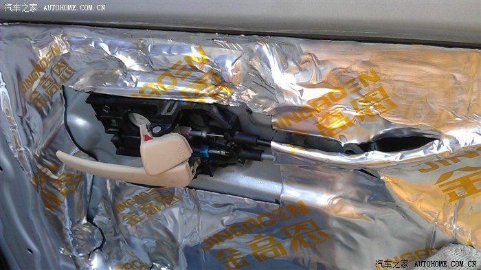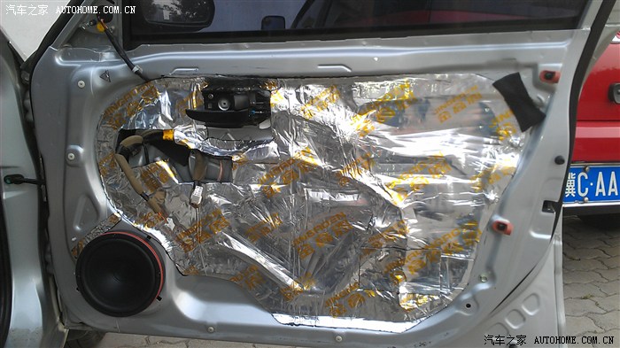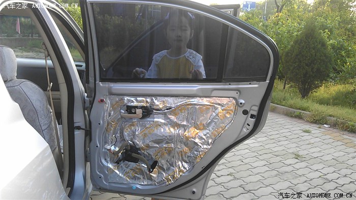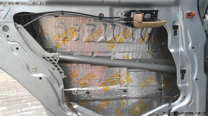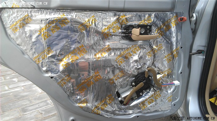 原车门板上有一层胶 已经变硬了而且开裂 我给喀什掉了 重新贴一层丁基胶