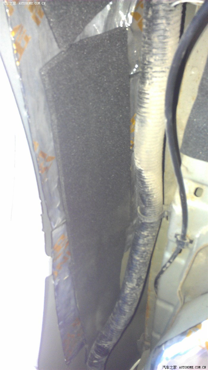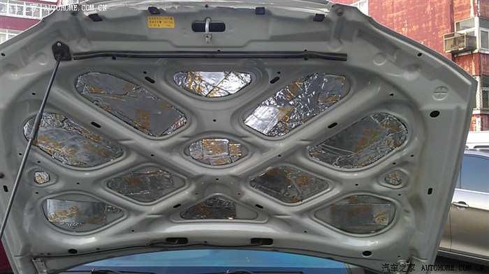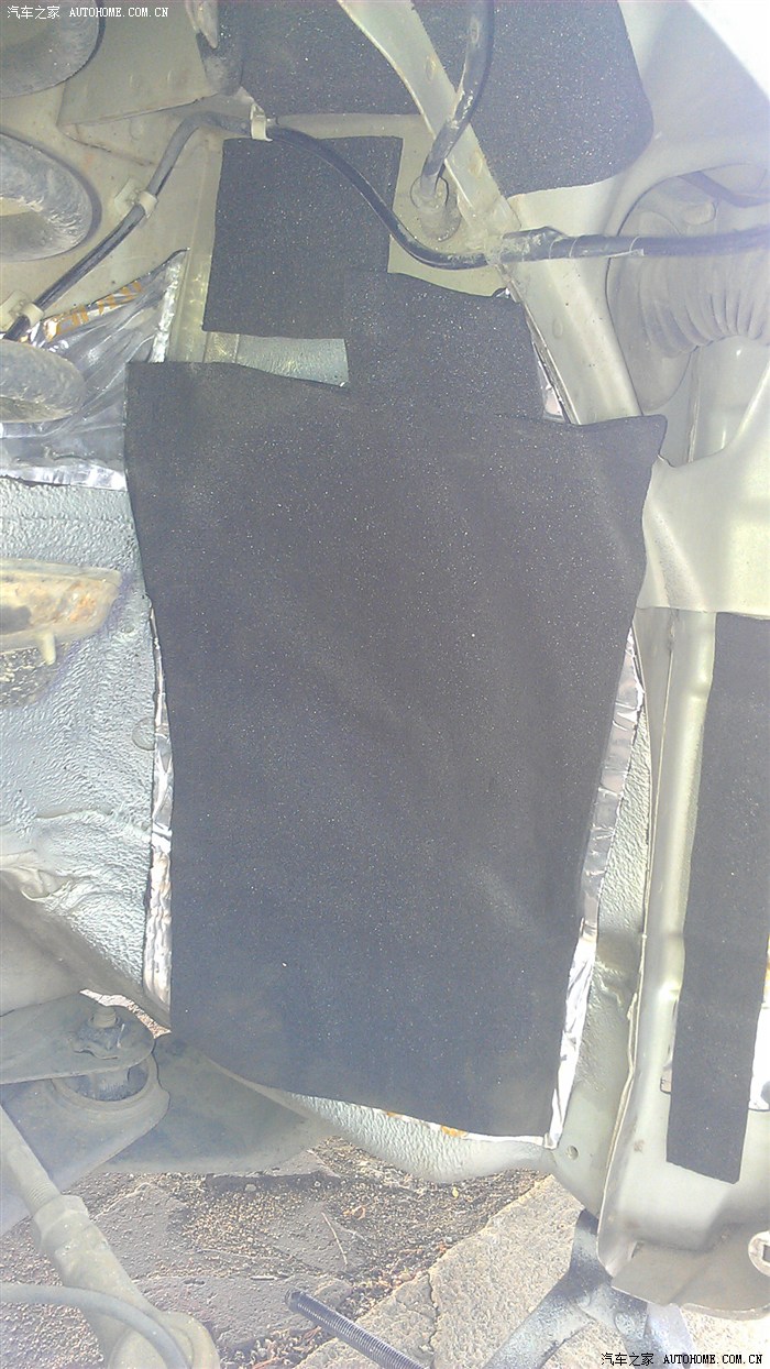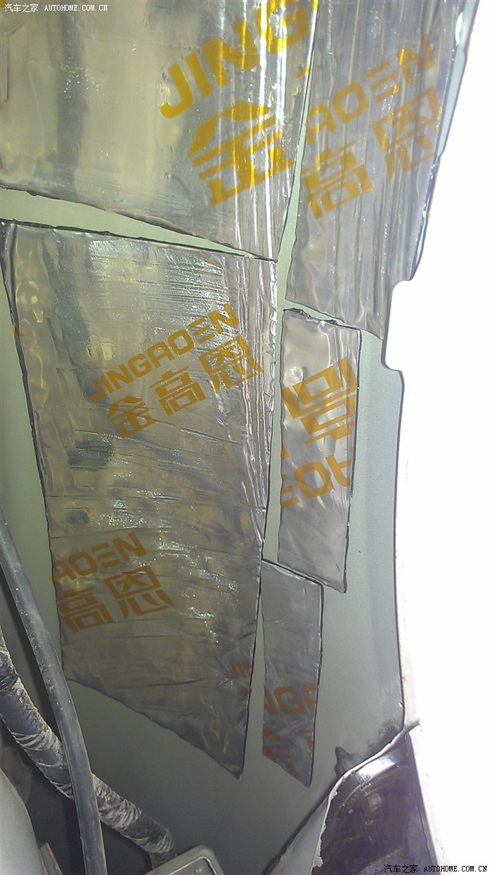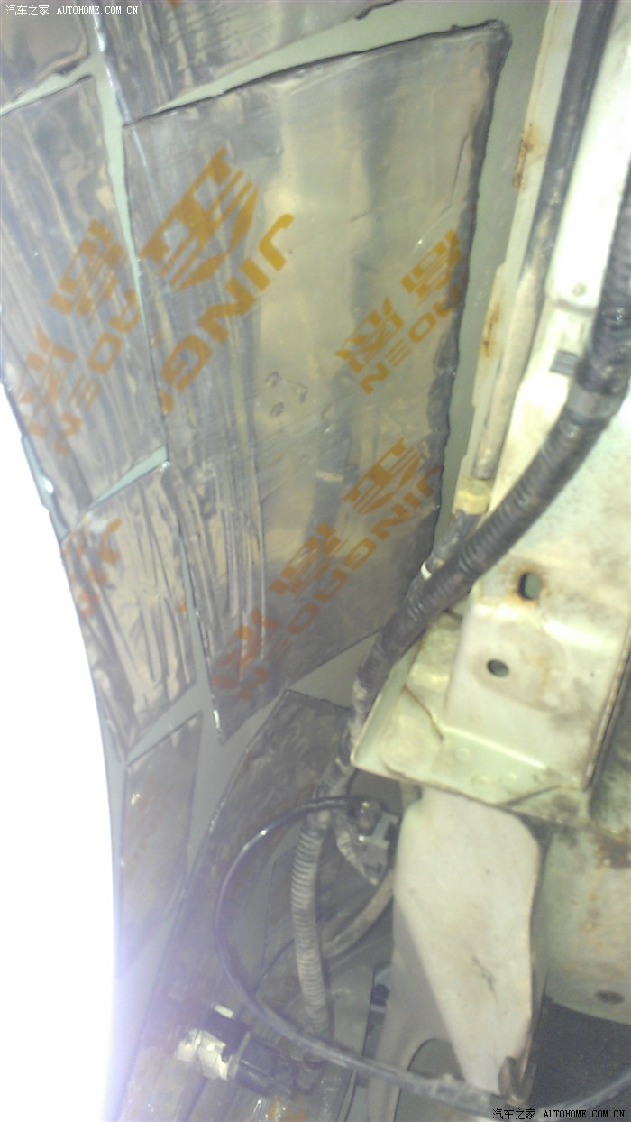 哈哈,这些侃侃而谈的理论知识都是我从书上学到的。下面说一下隔音的效果如何? 这应该是所有车友最关心的问题了,我可以很负责地告诉每一位车友,隔音效果非常明显,现在小石头打在底盘上听不到一点声音,车里音响效果比以前好很多,另外风嗓和胎噪有明显改善,现在还没试过高速,暂不知道效果怎样,现在坐车里感觉发动机声音也小了许多。那叫一个倍儿爽!
