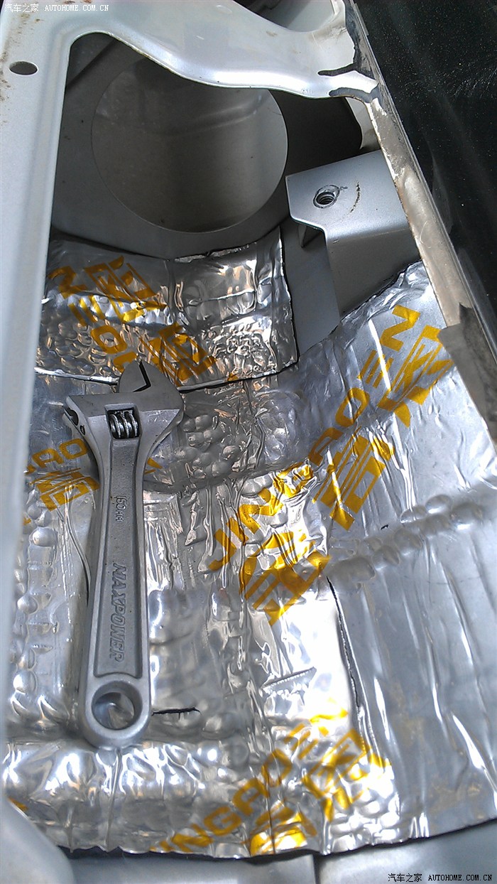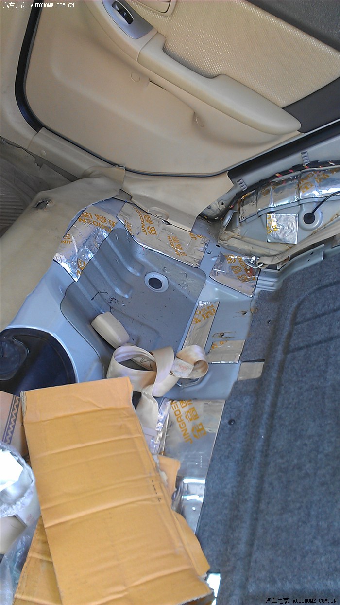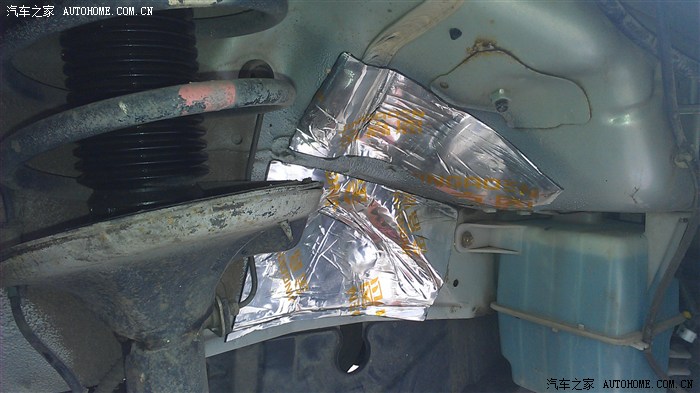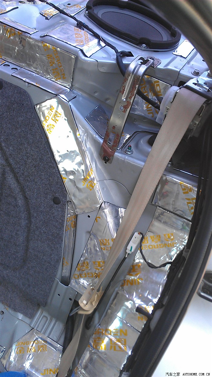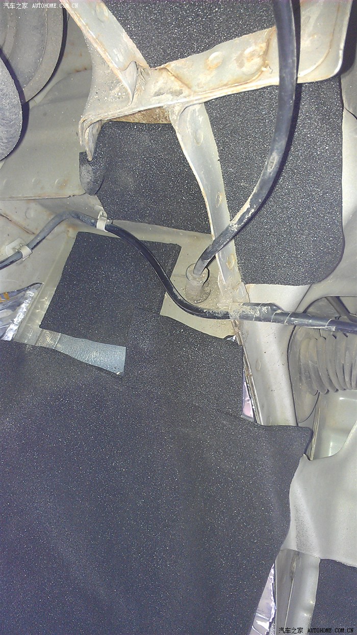 哈哈,这些侃侃而谈的理论知识都是我从书上学到的。下面说一下隔音的效果如何? 这应该是所有车友最关心的问题了,我可以很负责地告诉每一位车友,隔音效果非常明显,现在小石头打在底盘上听不到一点声音,车里音响效果比以前好很多,另外风嗓和胎噪有明显改善,现在还没试过高速,暂不知道效果怎样,现在坐车里感觉发动机声音也小了许多。那叫一个倍儿爽!