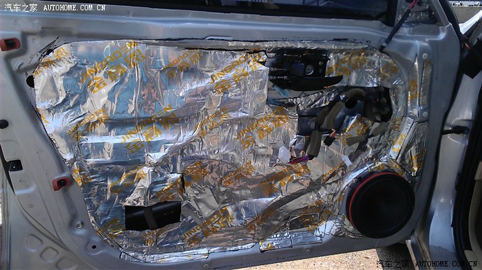 对四个车门进行密封隔音是因为车门隔音之后车门内层钢板的一些孔洞被隔音材料完全密封了,使车门形成了一个类似于音箱的箱体,为喇叭提供了一个更理想的工作环境,降低了因共振引起的谐波失真,声音会更干净有力