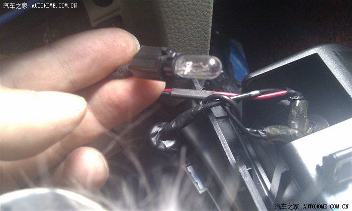 接烟灰盒内置灯泡(拆旧摩托车仪表灯泡)不是很亮,小灯泡不好找。