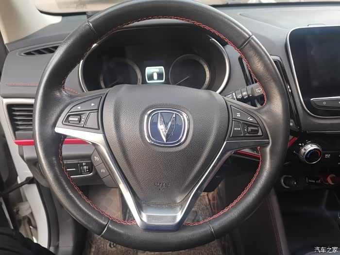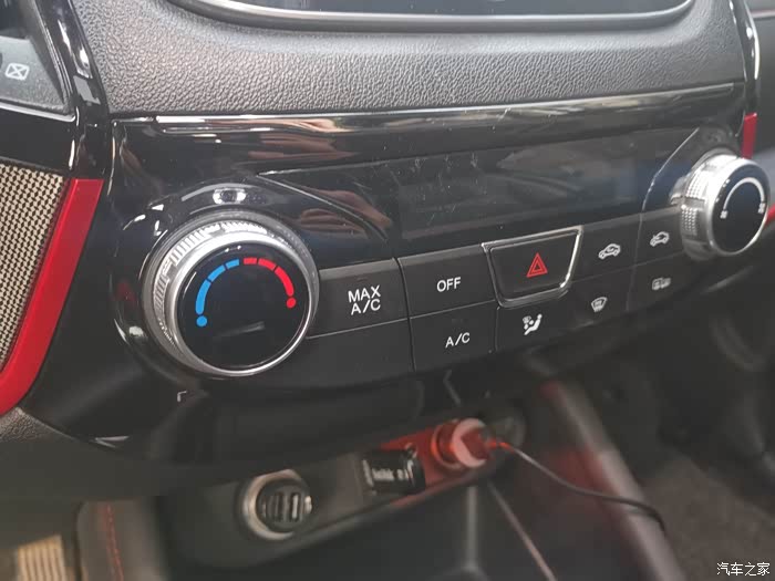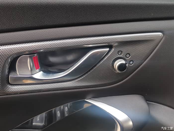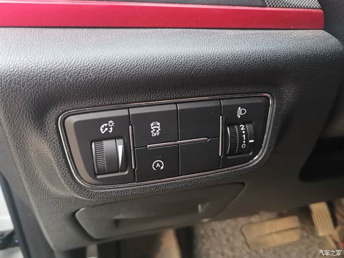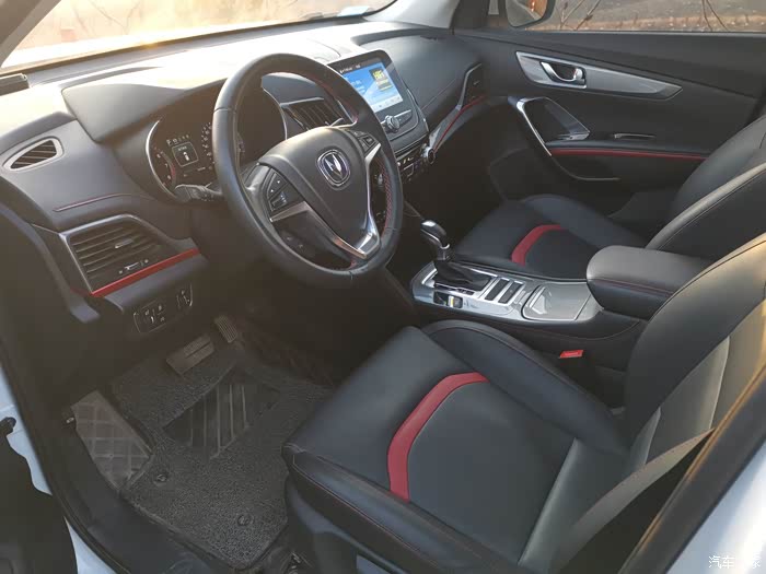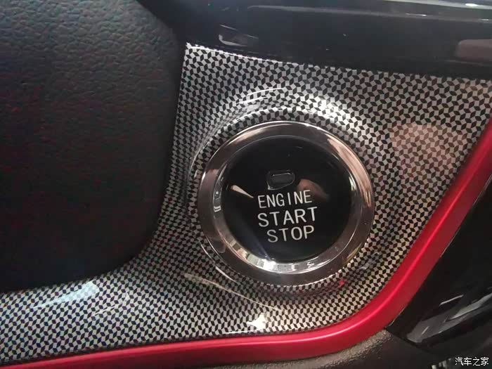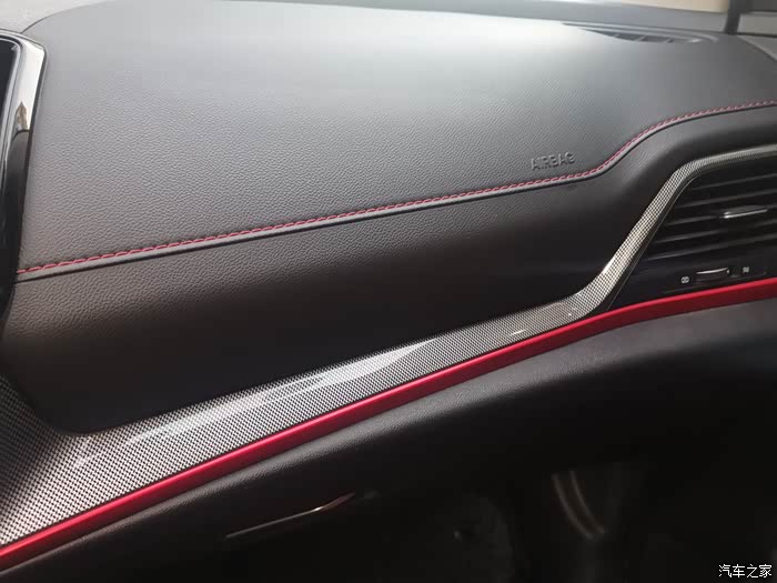 黑色的内饰加红色的线条点缀