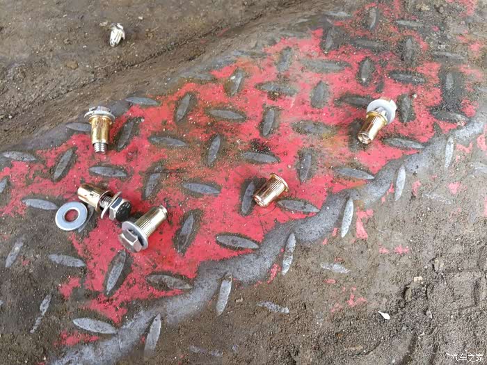 护板螺丝,没有专用拉铆工具,按商家提供的方法用扳手硬上,将螺丝拉胀固定,3个人操作,累个半死