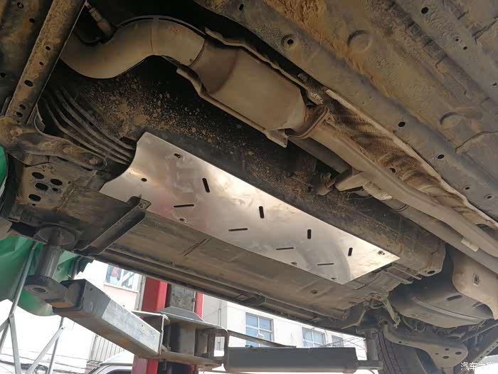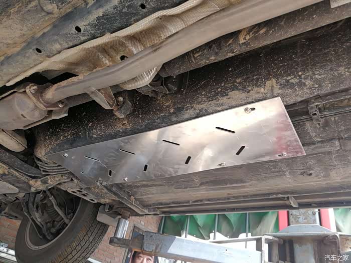 到朋友汽修厂将车辆上架,准备安装护板