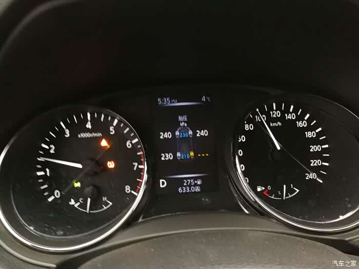 换上没有胎压监测的轮胎仪表盘显示画面,一个胎压报警符号