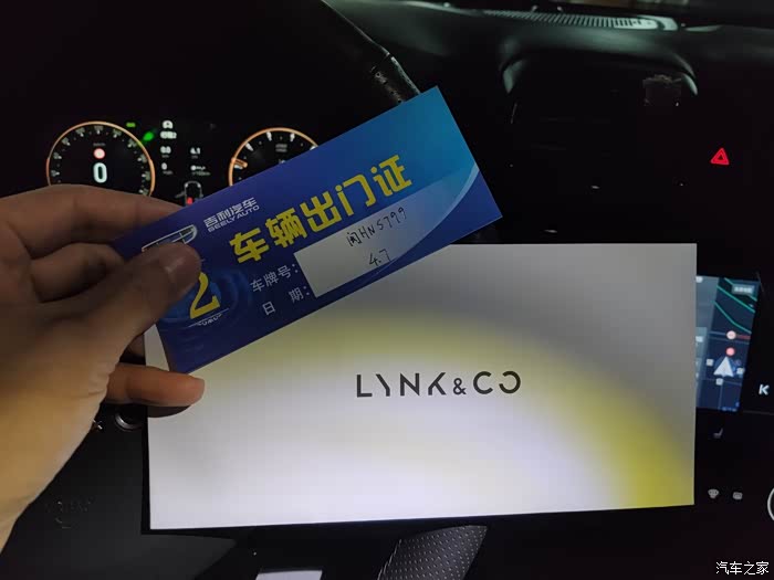 进店提车,时间太晚,店内小哥都下班了,加了微信,把钥匙放哪提前告知,轻车熟路拿到钥匙。进到车,第一眼就看到一封领克的信,还有出门证。安排的真是妥当