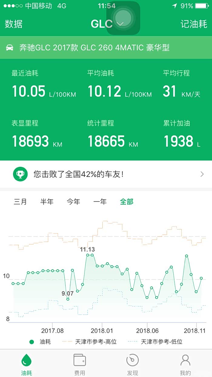 每次加油记录的油耗显示平均油耗10.12,乙醇汽油后确实油耗上升