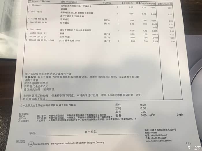 我的B保,除了上述基础保养外,4S店服务小哥推荐了升级AMG机油,更换空调滤芯,空调清洗,发动机养护。当然,我只接受了更换空调滤芯,830元。