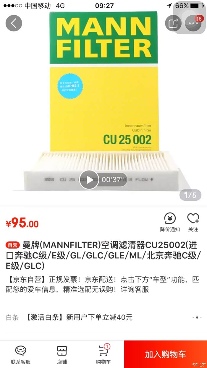 对比网上某东的空调滤芯价格,外用部分