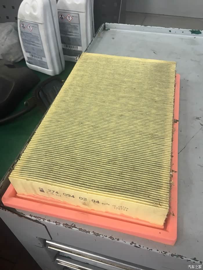 从注入的喷枪口可以看到机油的颜色,容量一般在不到7升左右,更换完机油,着车让发动机运转,利用这个时间,师傅更换了空调滤芯内置部分。