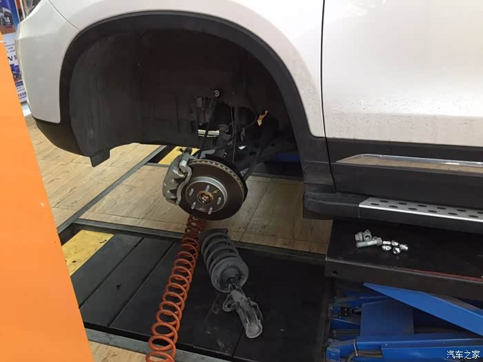 停到提升机上,升级车身准备换避震器