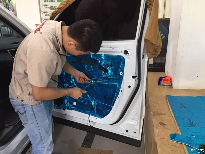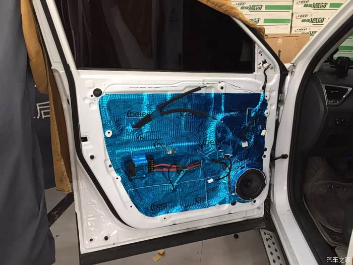 3.改原装车机,换零件提升音质,换喇叭,把原装前门的喇叭高低音4个换成惠威的M600套装喇叭提升音质欣赏音乐,顺便前门做隔音处理