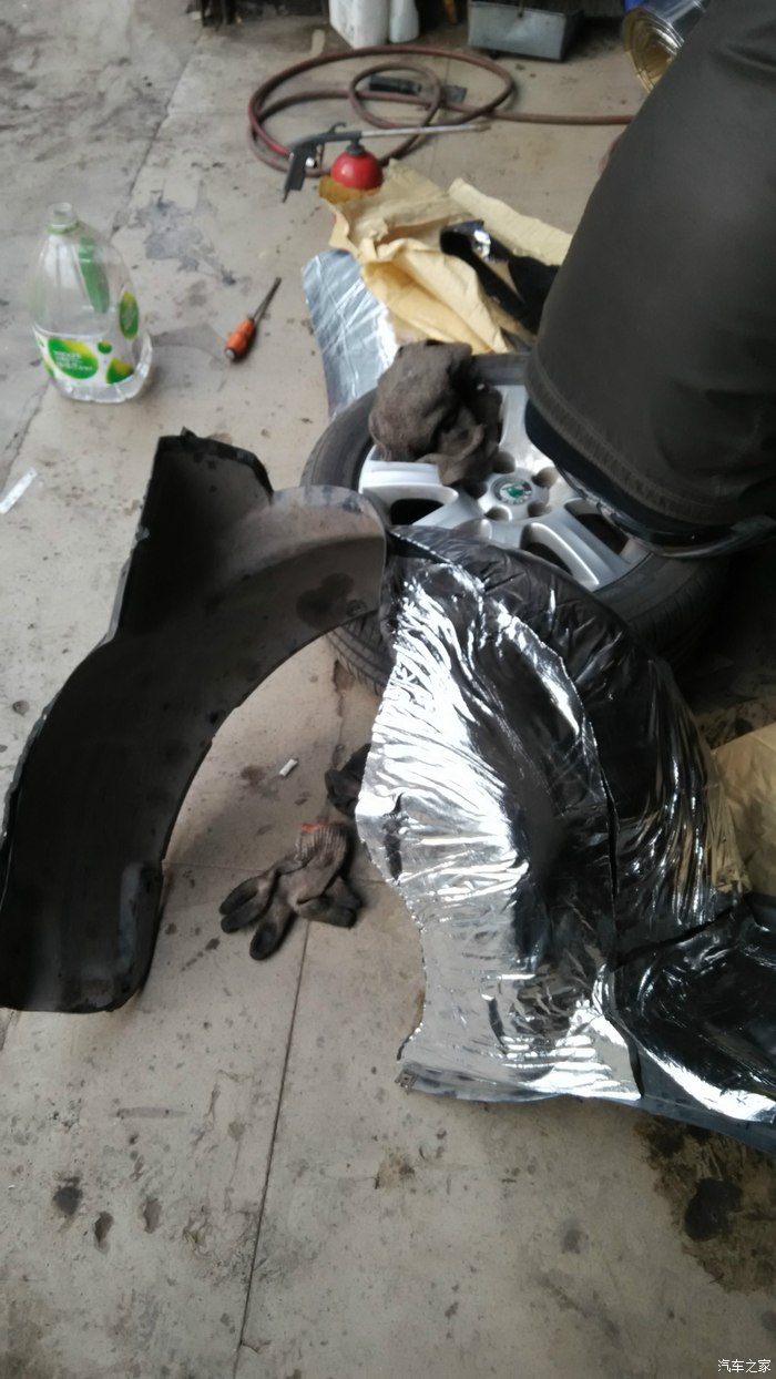 首先是翼子板的隔音,没做之前虽然是米其林轮胎,但胎噪还是会盖过风噪,一般高速上100公里速度以上时才会出现风噪盖过胎噪,做完后关窗速度60以上就感觉轻微风声了,这是以前完全想象不到的,胎噪路况好的情况下基本忽略,效果明显。我的做法是内衬里面首先车身钢板贴少许止震,然后内衬背面贴止震