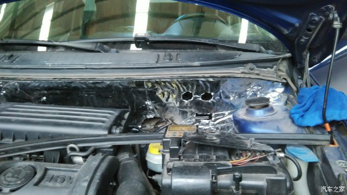 装好后效果确实有改善,不管是隔音还是音响效果,更纯净。胎噪消失了,隔音好了,发动机声音感觉会更突出,看论坛做防火墙隔音要拆很多东西,雨刮等等,另想办法,首先打开引擎盖
