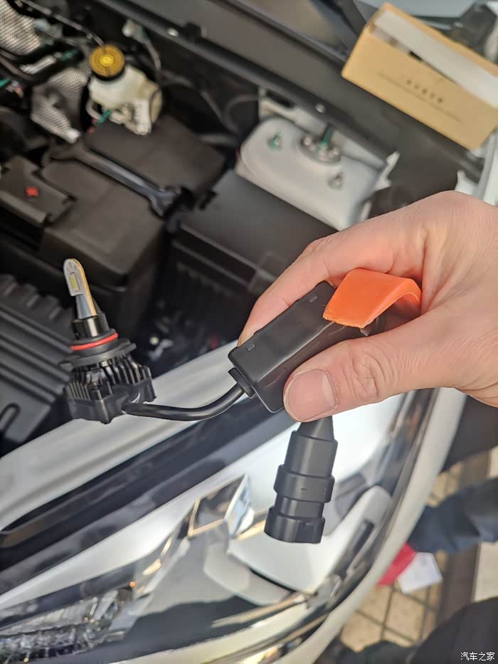 然后换上led灯,对插就是很简单,不过这个也看不出来正负极,插好先打开大灯试试,不亮就把方向换一下,没有很复杂