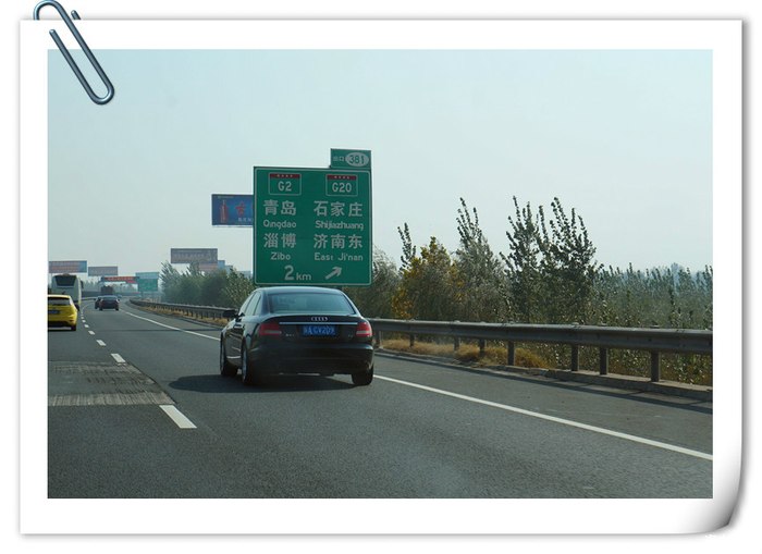 【装备】必要的,三角警示架和灭火器,灭火器建议大家买标准的1公斤的。胎压监测也强烈推荐,一路上看见有4,5辆车翻车或是单方事故,可能都与轮胎有关系。关于胎压要强调一下,不要听信轮胎店的2.5,一定要根据你的爱车的车门上的标识来充气,以防胎压过高产生爆胎危险!随着汽车轮胎的温度上升,气体会膨胀的,一般都会上涨0.2-0.4之间。我还带了一个打气泵,可以预设气压。药品带了一包,感冒药,发烧药,邦迪等。不要嫌麻烦,在一个人生地不熟的城市,找个药店很麻烦。食物和水,巧克力适当带点。 汽车的相关证件手续。行车记录仪,重要性就不多说了。