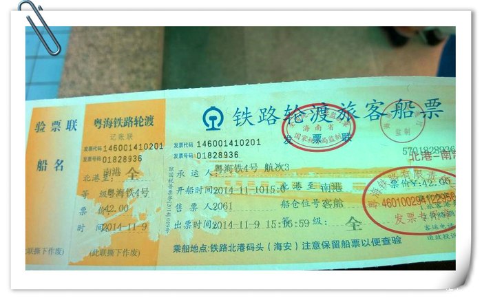 2:有三个码头可以过海:海安港,海安新港,北港。我走的是北港。北港就是火车过海的码头,船大,稳当。底层是火车,甲板停汽车,上层是乘客。北港发船是有时间表的,咨询电话:0759-6530999 我坐的是11点20的船,航时大概1小时10分钟。海安港是小船,基本装满就走,不足是船小。所以我推荐走北港。