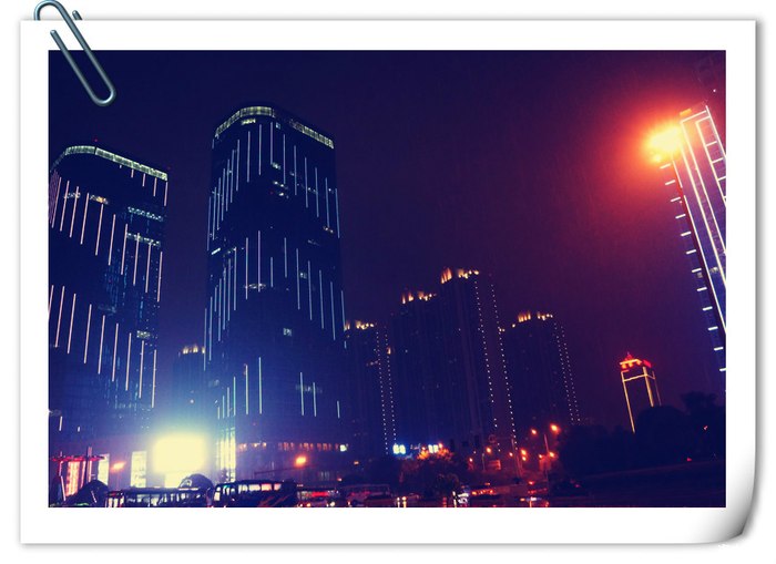 蒙蒙细雨,灯火阑珊的城市,都市的美在夜里最甚。