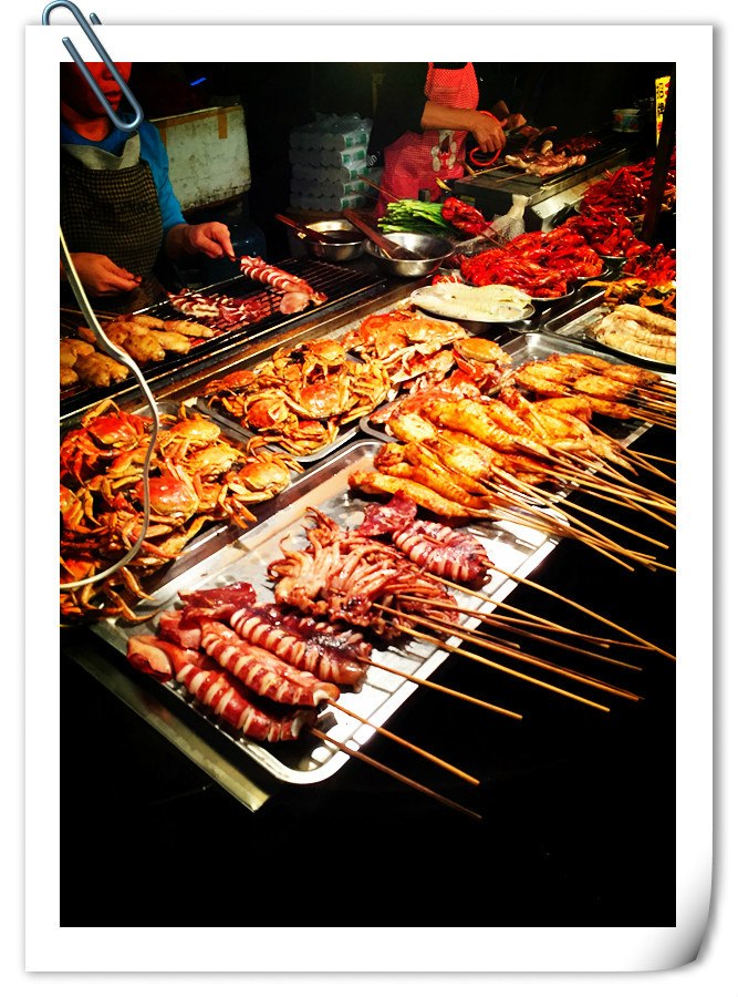 在长沙一个比较有名的店吃了小龙虾还有臭豆腐。 口味虾是辣的,蒸虾则是原味的。臭豆腐黑黑的,外焦里嫩。羊肉串20元5串,肉很好。