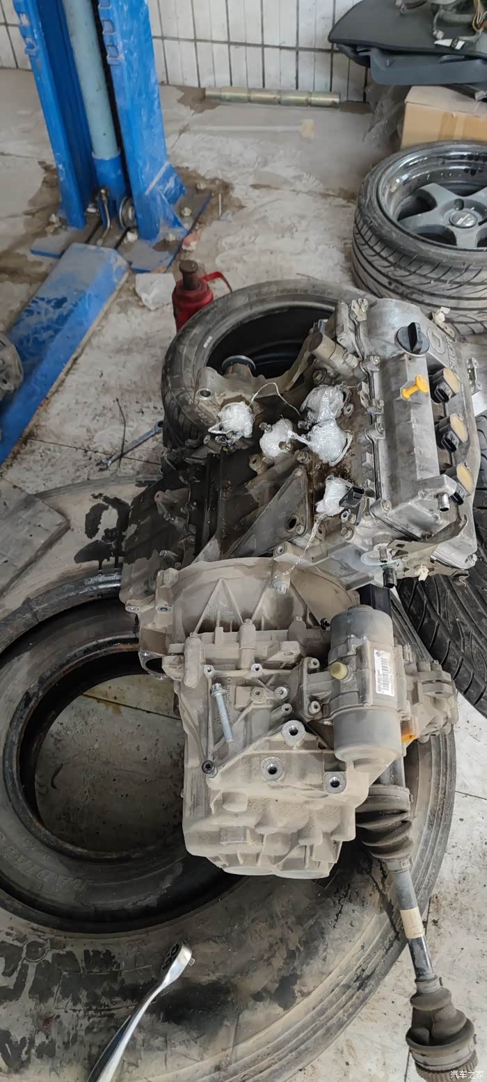 第一步先把发动机带后桥整个拆下 然后分离出发动机