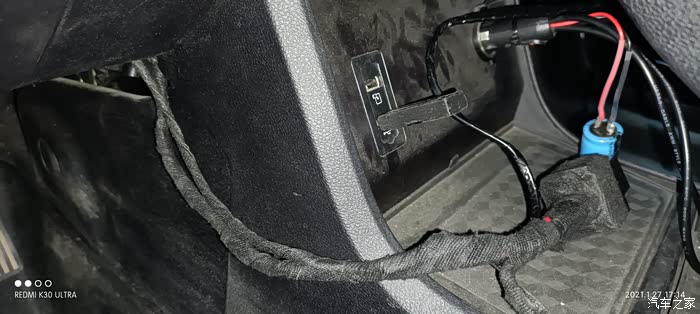 至于这个方向盘发热丝的正极线我是直接从原车电瓶正极接线进来的,电瓶正极处我有安装一个7A小保险插片,线材用的是0.7平方硅胶铜镀锡线,用料都不孬~线路用继电器接到原车中控台下面的点烟器正极信号,这样确保着车才有电,不会一直通电,万一没关方向盘加热开关那第二天岂不是没电了~