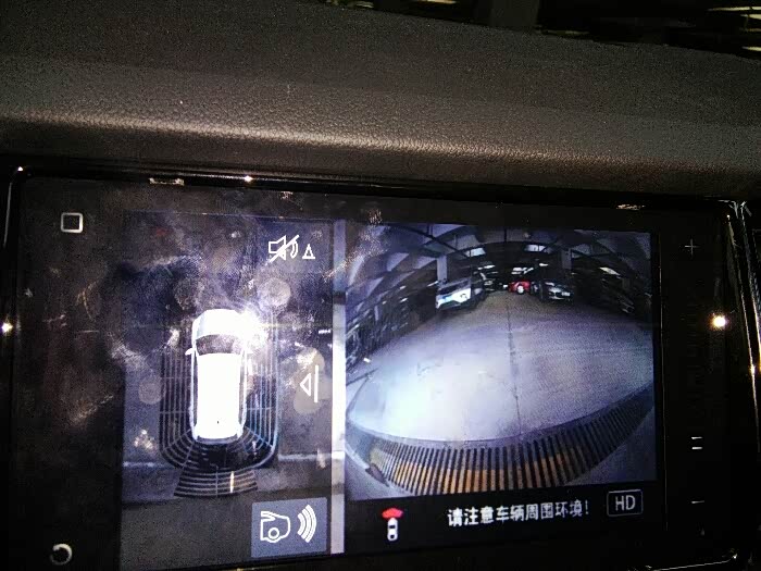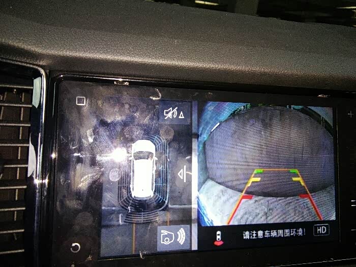 加装360一体机,主机标志为迈腾。这个图像是弯曲的,问4s店解释说是正常的,因为是全景影像。因为是弯曲的就不好判断距离。另外4s店也没有提供说明书。我自己通过遥控器调整似乎不行,只是调整标尺(从轨迹线调整为倒车线,倒车图像有差别,多了蓝色区域部分。)和亮度。不像原装倒车影像,图像没有变形距离好判断。另外使用360没有开关切换到原厂车倒车影像这正常吗?