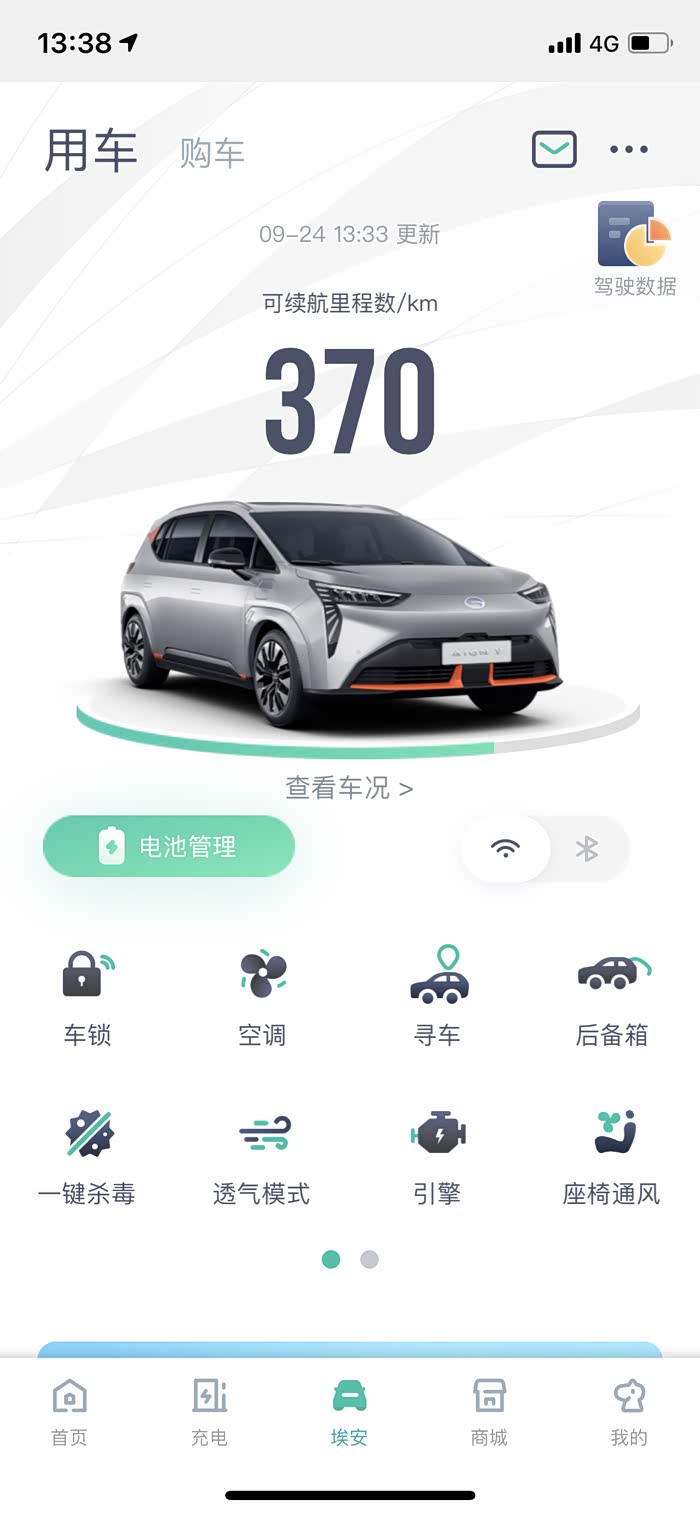 出库续航里程495,刚上车就准备蓝牙激活,未果,遂放弃,先开回家再说。期间完全忘了临牌等同于外牌这个残酷的事实,目前还没收到通知,但我估计3分肯定没跑了。