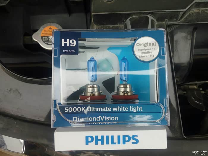 车是2014年12月买的!2.0舒适!接近两年时间利用节假日跑了青海湖、昆明及无数省内自驾游!车况一直良好,平均油耗7.3,还算满足预期!前几天突然发现左侧远光灯不亮了!本着能自己动手绝不便宜4S店的精神,在某宝选择了飞利浦蓝钻之光H9灯泡,色温5000K。今天利用空闲进行了更换,较之原车灯泡增色不少!下面是更换流程: