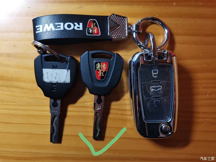 买了一辆二手荣威350s,平台那边传回来三把车钥匙。如图,中间那把钥匙是什么意思,纹路是镜像的不能使用