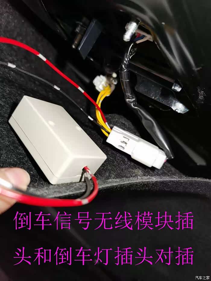 产品由2部分组成,1下翻控制器,和后视镜调节开关对插。2倒车信号无线模块,和车尾倒车灯插头对插。